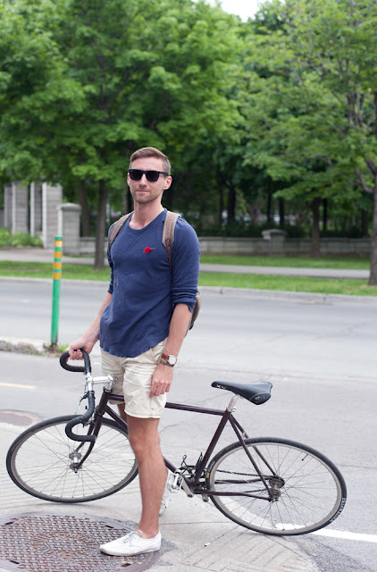 Of course I couldn't have a guys week without highlighting one of the snazzy gentlemen dressers in Montreal.  Notice the red felt square (Carre Rouge) pinned to his shirt, a symbol of solidarity with the Quebec student protesters.